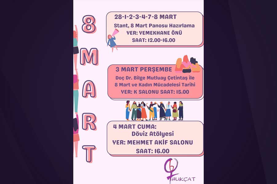 Hacettepe Üniversitesi Kadın Çalışmaları Topluluğu 8 Mart’a giderken söyleşi, pano hazırlama, döviz hazırlama etkinlikleriyle bir araya geliyor.