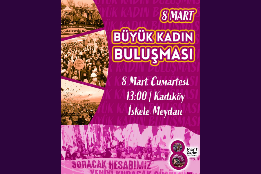 8 Mart Kadın Platformu, 8 Mart Dünya Emekçi Kadınlar Günü'nde 13.00'te Kadıköy'de buluşmaya çağırıyor!