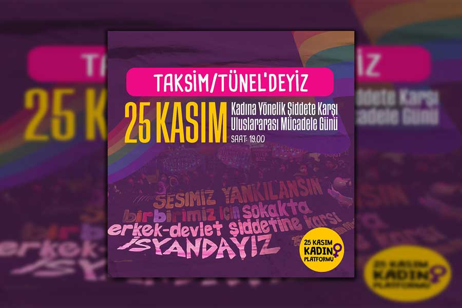 İstanbul 25 Kasım Kadın Platformu, sosyal medya üzerinden yaptıkları duyuruyla 25 Kasım Kadına Yönelik Şiddete Karşı Uluslararası Mücadele ve Dayanışma Günü’nde Taksim Tünel’de olacaklarını söyledi. Kadınlar, duyuruda “Gelsin erkekler bildiği gibi, gelsin devlet bildiği gibi. Biz de 25 Kasım saat 19.00’da erkek-devlet şiddetine karşı Taksim Tünel’deyiz bildiğimiz gibi. Haydi bakalım saatlerimizi ayarlayalım, çağrımızı ulaştırmadık kadın bırakmayalım” dedi.