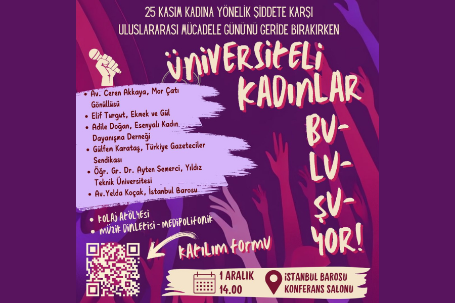 İstanbul'daki üniversitelerin kadın çalışmaları toplulukları ve kulüpleri üniversiteli kadınları bir araya gelmeye çağırıyor. Toplulukların birlikte yapacağı etkinlikte açık oturum, konser ve kolaj atölyesi gerçekleşecek.