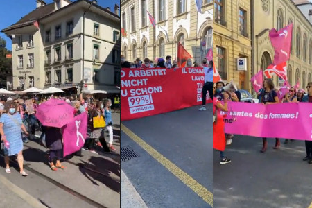 Cumartesi günü İsviçre'nin başkenti Bern'de binlerce kişi federal hükümetin, kadınların emeklilik yaşını 64’ten 65’e yükseltme planına karşı yürüdü.
