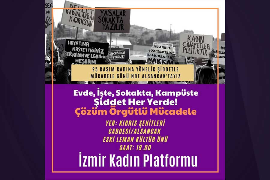 İzmir Kadın Platformu, ‘Şiddet her yerde çözüm örgütlü mücadele’ şiarıyla 25 Kasım Perşembe günü sokağa çıkıyor.