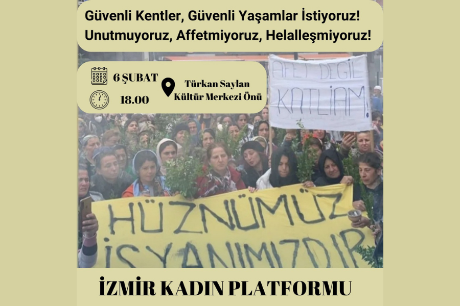 İzmir Kadın Platformu, "Unutmadık, affetmedik, helalleşmiyoruz" sloganıyla güvenli kentler, güvenli yaşamlar için buluşuyor.