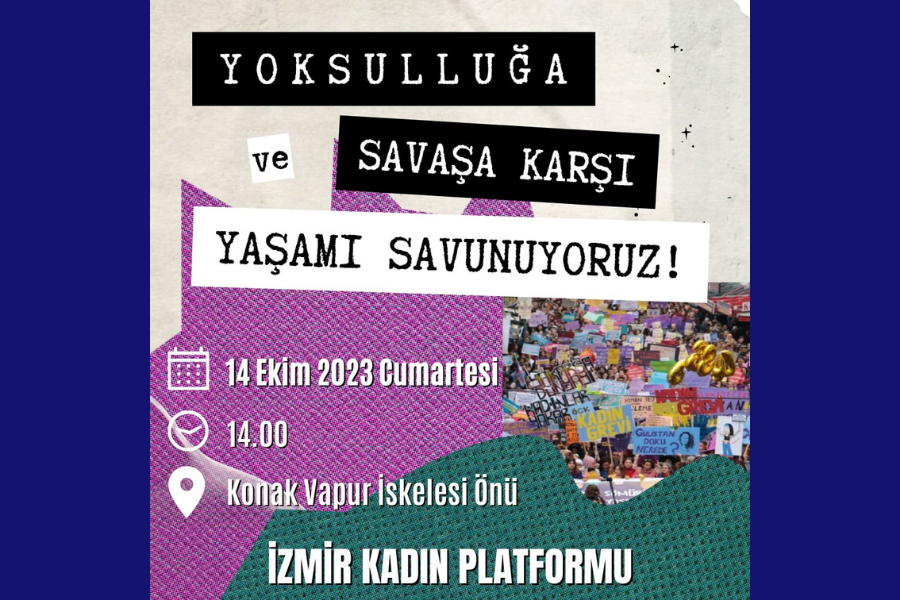 İzmir Kadın Platformu, yoksulluğa ve savaşa karşı yaşamı savunmak için tüm kadınları Cumartesi günü Konak Vapur İskelesi önüne çağırıyor.