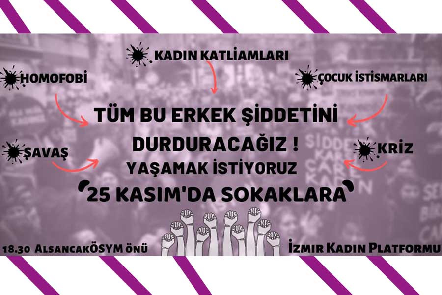 İzmir Kadın Platformunun çağrısıyla kadınlar 25 Kasım’da Alsancak ÖSYM önünde buluşacaklar