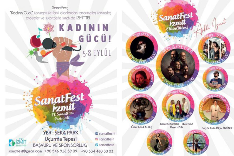Festivalde; gümüşten ebruya, camdan seramiğe, kırkyamadan nakışa, doğal ürünlerden el yapımı yiyeceklere kadar birçok alanda el emeği ürünün ulaşılabileceği stantlar yer alacak. Farklı el sanatlarına dair atölyelerin de yapılacağı SanatFest’te Banu Tozluyurt, Ebru Tuay ve Özge Uzun “Kadının Adı Var” isimli gösterileriyle, Doç. Dr. Evrim Ölçer Özünel ise “Masal Mekânında Kadın Olmak” konulu söyleşi ve masal dinletisi ile yer alacak. Zumbadan, yogaya, 80’ler-90’lar partiden, tek kişilik gösterilere kadar çok sayıda etkinliğin yer alacağı festivalde Ezgi Aktan ve Mary Jane sahne alacak, Moğollar müzik grubu da İzmitlilerle buluşacak.