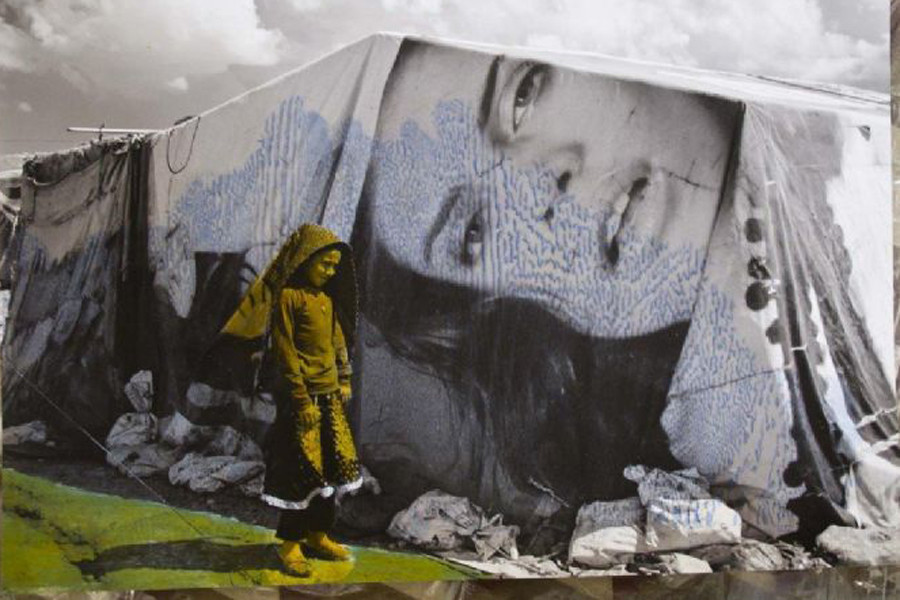 2015'te Lübnan-Suriye sınırı yakınında Bekaa Vadisi'ndeki mülteci kamplarını da ziyaret etmiş. Saab'ın filmi Günde Bir Dolar - mültecilere geçinmeleri için günlük ayrılan miktar - ve sanatçının müdahalelerini içeren fotoğraflar, izleyiciyi mülteci deneyimi gerçeğinin farklı yönlerini düşünmeye davet ediyor. Toplumu sonsuz tüketime teşvik eden, teklifsiz ve kaba billboard reklamlarının basıldığı malzemeden yapılmış çadırların görüntüleriyle, herhangi bir verim almanın imkânsız olduğu topraklar üzerindeki korkunç yaşam koşullarını anlatan görüntüleri birleştiriyor. Cömert 'doğa' kavramının buradaki göz kamaştırıcı yokluğunun dikkat çekici olduğunu belirtiyor. Portreler bu acımasız ironiye tanıklık etmenin yanı sıra, bir zamanların verimli tarım alanları olan bu donuk, boş arazide yaşamaya zorlanan (çoğunlukla) kadın ve çocuklara ait haysiyeti, dayanma gücünü ve hatta zaptolunmaz mizah duygusunu da belgeliyor.