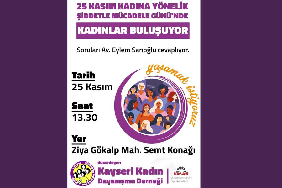 Kayseri Kadın Platformu'nun düzenlediği etkinlikte Av.Eylem Sarıoğlu kadınların sorularını cevaplayacak.