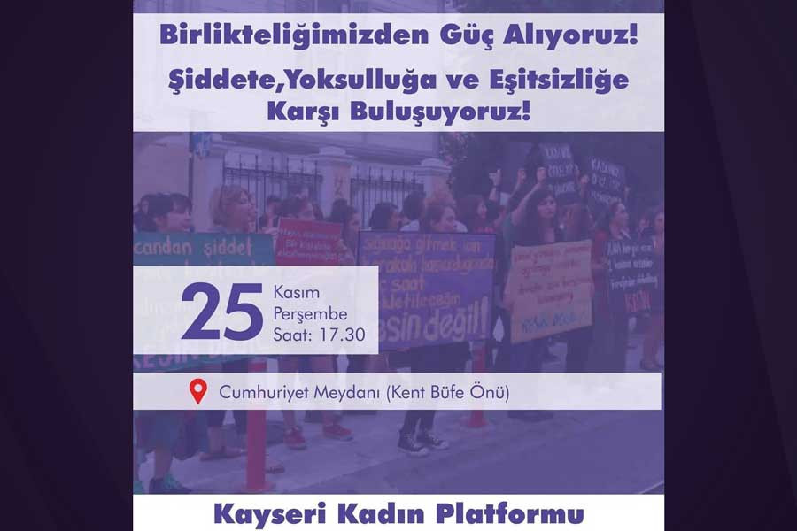 Kayseri Kadın Platformu 25 Kasım’da her türlü şiddete ve ayrımcılığa karşı gerçek eşitlik talebiyle sokağa çıkıyor.