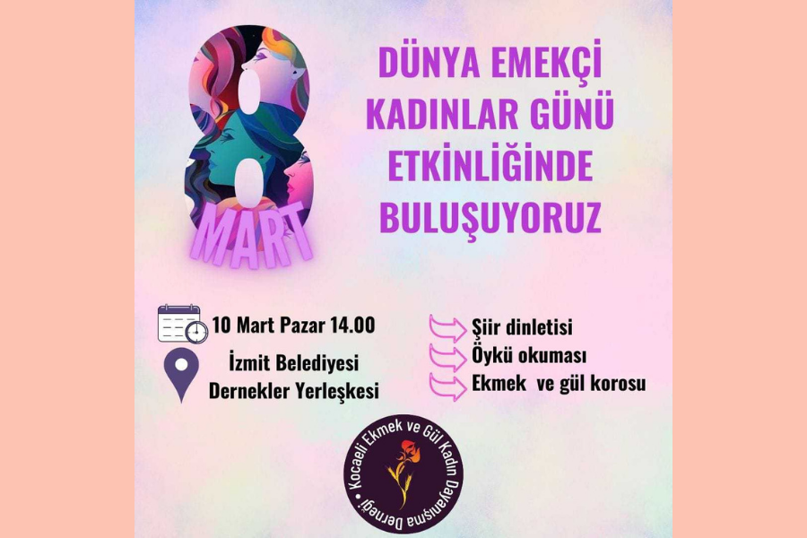 Kocaeli Ekmek ve Gül Kadın Dayanışma Derneği, Dünya Emekçi Kadınlar Günü etkinliğinde buluşmaya çağırıyor