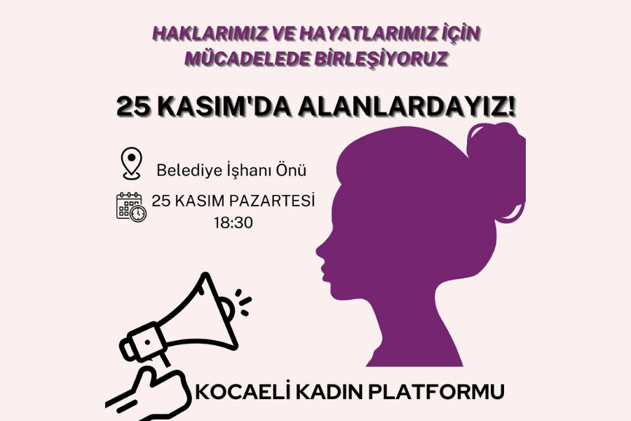 Kocaeli Kadın Platformunun çağrısıyla kadınlar 25 Kasım günü buluşacak.