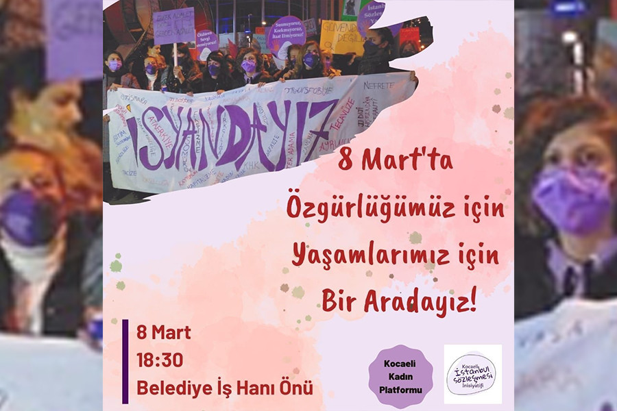 ‘8 Mart'ta özgürlüğümüz için, yaşamlarımız için bir aradayız’ diye çağrı yapan Kocaeli Kadın Platformu 8 Mart’ta Belediye İş Hanı önünde eylem yapacak.