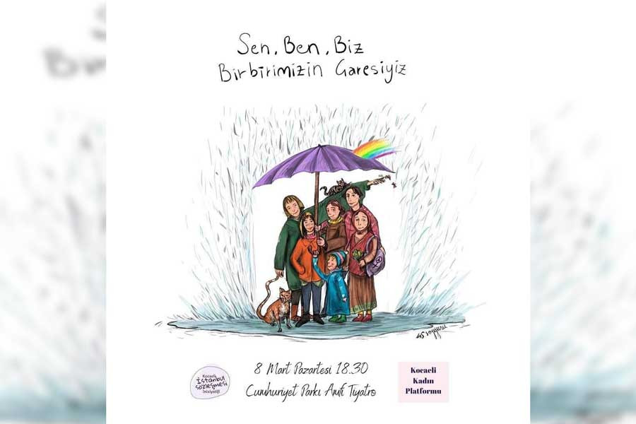 Kocaeli İstanbul Sözleşmesi İnisiyatifi ve Kocaeli Kadın Platformu 8 Mart günü “Sen, ben, biz birbirimizin çaresiyiz” şiarıyla eylem gerçekleştiriyor.