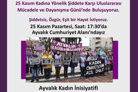 “Şiddetsiz, özgür eşit bir yaşam istiyoruz” diyen Ayvalık’tan kadınlar 25 Kasım Pazartesi günü saat 17.30’da Ayvalık Cumhuriyet Alanı’nda olacak.