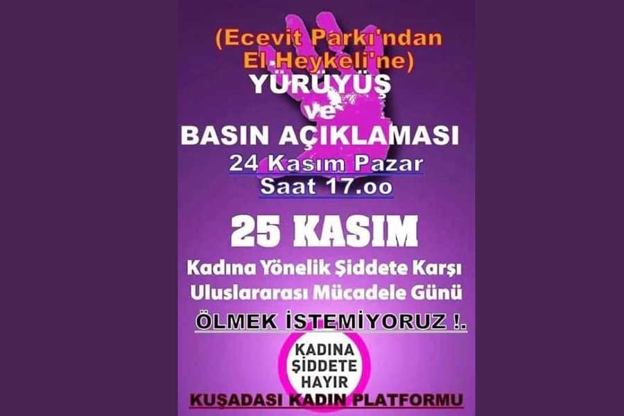 Kuşadası Kadın Platformu 24 Kasım’da Ecevit Parkı’ndan El Heykeli’ne yürüyecek.