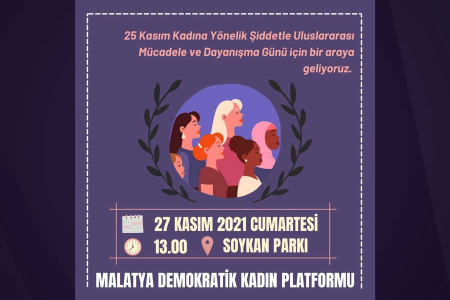 Malatya Demokratik Platformu 25 Kasım Kadına Yönelik Şiddete Karşı Uluslararası Mücadele ve Dayanışma Günü dolayısıyla 27 Kasım Cumartesi günü eylem yapıyor.
