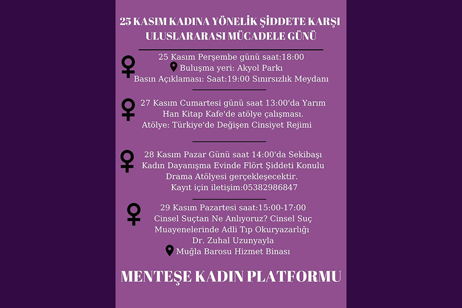 Menteşe Kadın Platformu çağrısıyla kadınlar 25 Kasım'da şiddete ve yoksulluğa karşı bir araya geliyor.