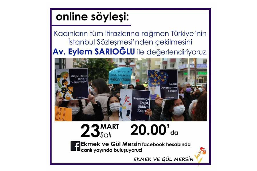 23 Mart Salı (bugün) online olarak gerçekleştirilecek etkinlik Ekmek ve Gül Mersin Facebook hesabından yapılacak.
