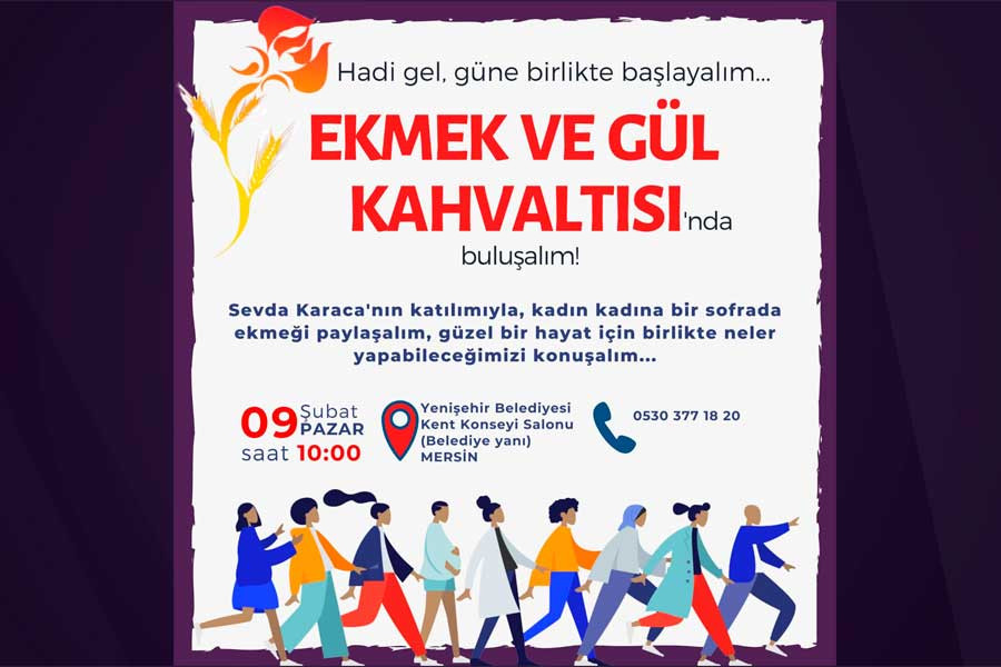 “Kadın kadına bir sofrada ekmeği paylaşalım, güzel bir hayat için neler yapabileceğimizi konuşalım” diyen Mersinli kadınlar tüm kadınları, 9 Şubat Pazar günü Yenişehir Belediyesi Kent Konseyi Salonuna çağırıyor.