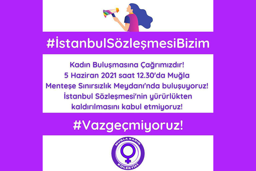 İstanbul Sözleşmesinden çekilme kararına karşı kadınlar Muğla'da 'İstanbul Sözleşmesi Bizim' diyerek bir araya geliyor ve tüm Muğlalı kadınlara dayanışma çağrısı yapıyor.