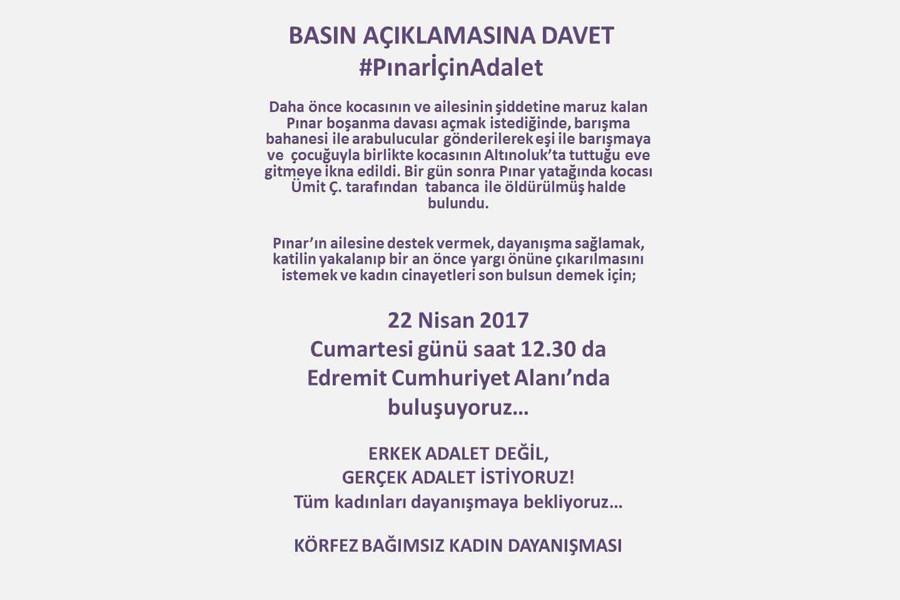 Körfez Bağımsız Kadın Dayanışması'nın Pınar Çiçek için yaptığı açıklama burada