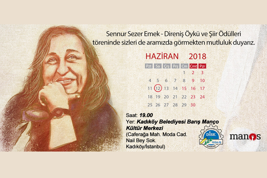 Şiirin ve umudun yorulmaz iğnesi Sennur Sezer anısına Manos Kitap ve Gıda-İş Sendikasının 3’üncüsünü düzenlediği Sennur Sezer Emek-Direniş Öykü ve Şiir Yarışması Ödülleri sahiplerini buluyor. Yarın Barış Manço Kültür Merkezinde yapılacak etkinlikte ödüller sahiplerine verilirken Sennur Sezer’in de 75. yaşı kutlanacak.