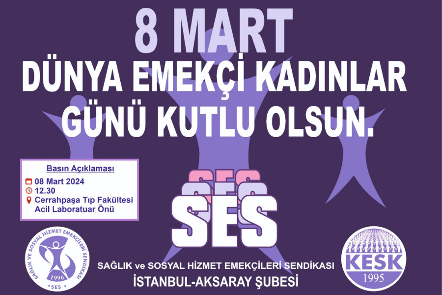 SES İstanbul Aksaray Şubesi 8 Mart Dünya Emekçi Kadınlar Günü için Cerrahpaşa Tıp Fakültesi Acil Labaratuar önünde buluşmaya çağırıyor!