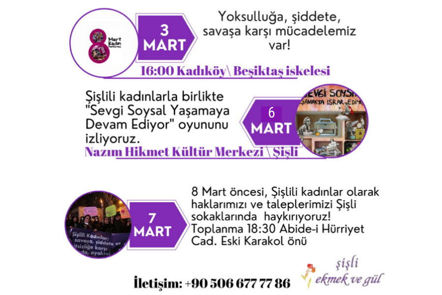 Şişli Ekmek ve Gül Grubu 3 Mart'ta Kadıköy'de, 5 Mart'ta 'Sevgi Soysal Yaşamaya Devam Ediyor' oyununda, 7 Mart'ta Şişli sokaklarında buluşuyor.