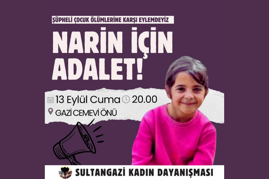 Sultangazi Kadın Dayanışması şüpheli çocuk ölümlerine karşı ve 'Narin için adalet' diyerek eylemde buluşacak.