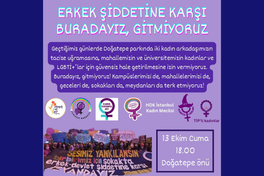 Sarıyer Doğatepe Parkında iki genç kadının tacize uğramasına karşı, mahallenin üniversitenin daha güvenli alanlar haline gelmesi için Boğaziçi Üniversitesi Ekmek ve Gül Grubu, Feminist Boğaziçi, Kadın Savunma Ağı,Üniversiteli Feminist Kolektif, HDK İstanbul Kadın Meclisi, Kampüs Cadıları ve TİP'li Kadınlar, tüm mahalleli kadınları ses çıkarmaya Doğatepe önüne çağırıyor.