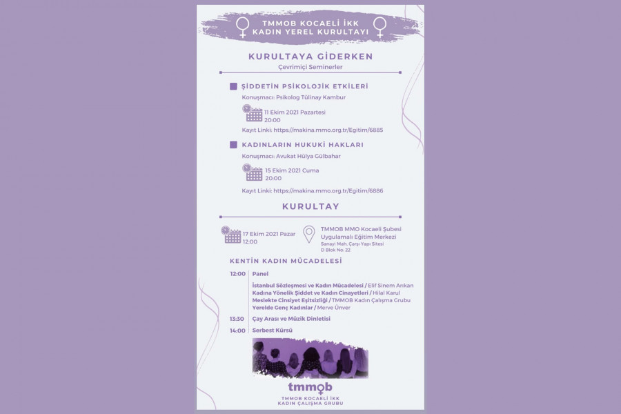 TMMOB Kocaeli İKK Kadın Yerel Kurultayının çağrısı şöyle: