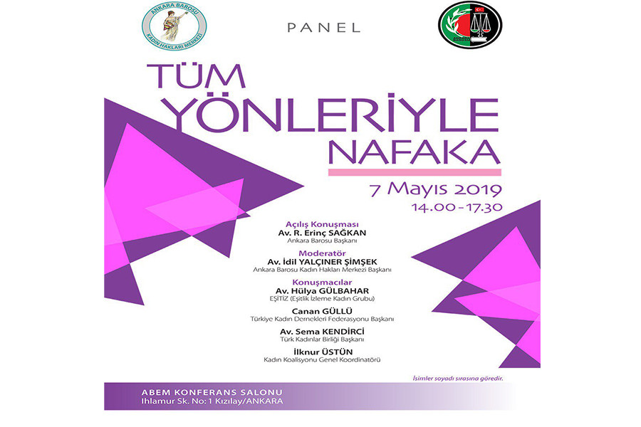 Ankara Barosu Kadın Hakları Merkezinin düzenlediği “Tüm Yönleriyle Nafaka" paneli 7 Mayıs 2019 14:00’te ABEM’de