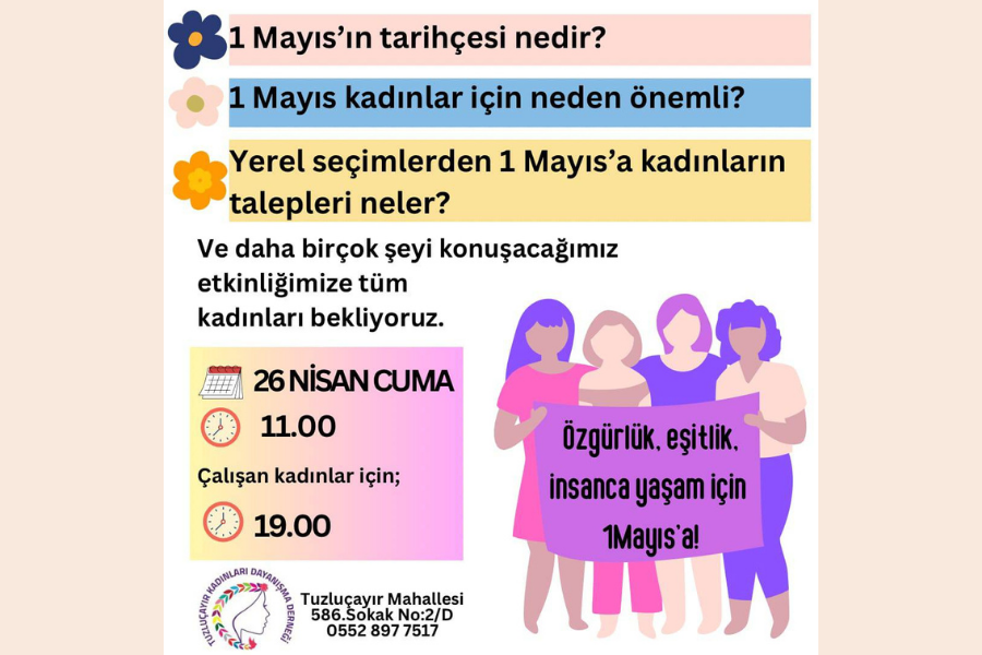 Tuzluçayır Kadınları Dayanışma Derneği mahallelerindeki kadınları 1 Mayıs'ı tartışmaya çağırıyor.