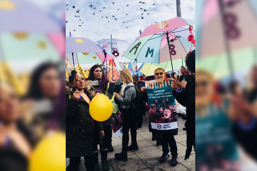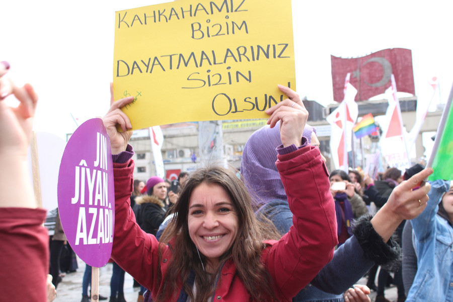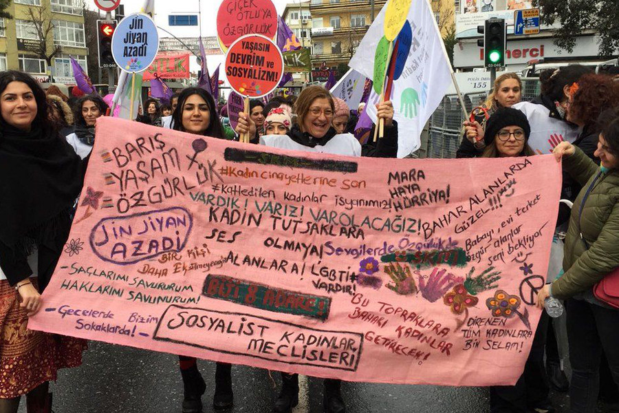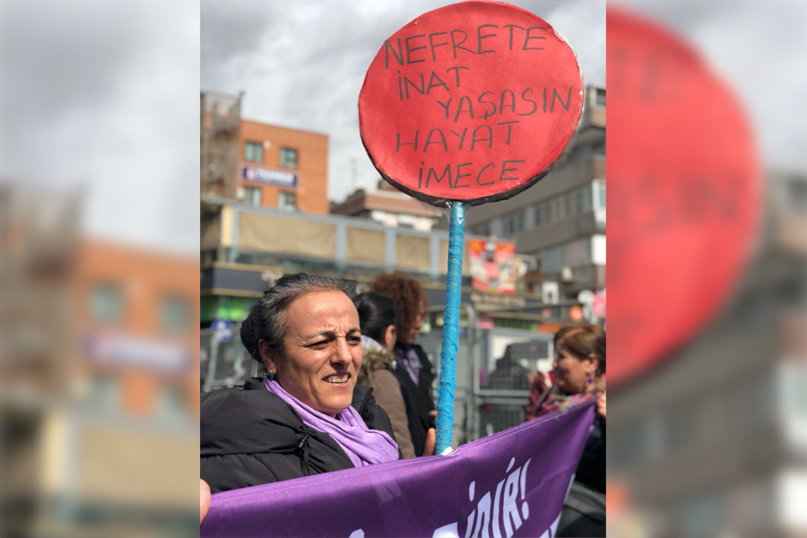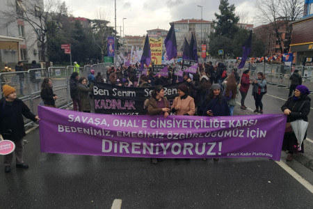 “Savaşa, OHAL’e, cinsiyetçiliğe karşı emeğimiz, kimliğimiz ve özgürlüğümüz için direniyoruz” sloganıyla Bakırköy Özgürlük Meydanında buluşan kadınlar 8 Mart'ı kutluyor