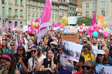 İsviçre’de on binlerce kadın, 24 ve 25 Eylül tarihlerinde Federal Parlamentoda ücretlerde kadınlara yönelik ayrımcılığın ele alınacağı görüşmeler öncesi ‘Eşit işe eşit ücret istiyoruz’ dedi.