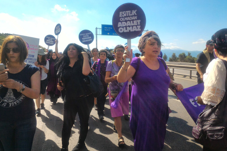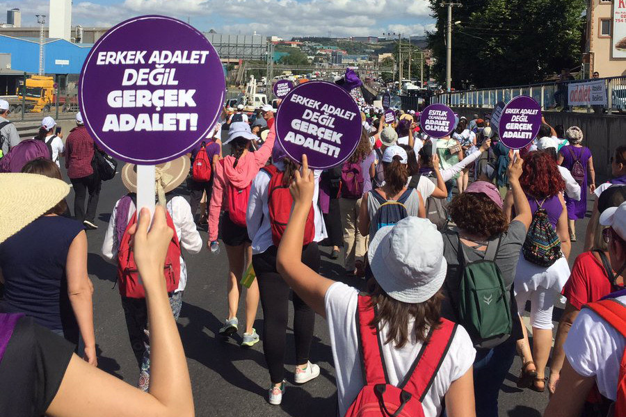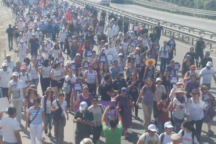 Türkiye’nin birçok yerinden gelen kadınlar bugün adalet taleplerini haykırmak, ‘Erkek adalet değil, gerçek adalet’ demek için Gebze’den Adalet Yürüyüşüne katıldı.