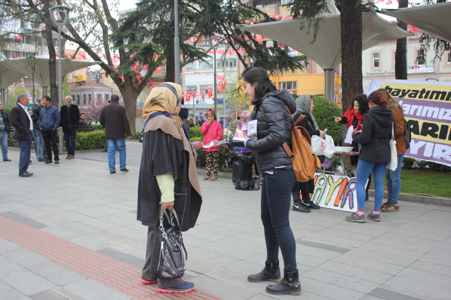 Kayseri Kadın Dayanışma Derneği metal işçisi kadınlara dağıttığı bildiriyle; evde, işte, her alanda kadınlara çalışmaktan başka bir düzeni reva görmeyen bu değişikliğe ‘hayır’ deme çağrısı yaptı.