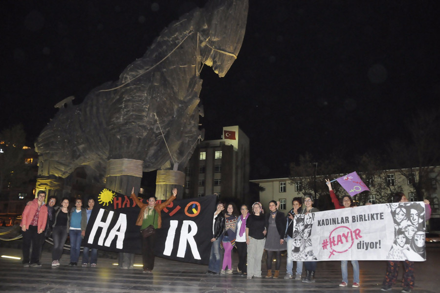 13 Nisan günü 13 ilde anayasa değişikliğine ilişkin ortak eylemler yapan kadınların sözü ‘hayır’dı. İşte il il kadınların eylemleri...