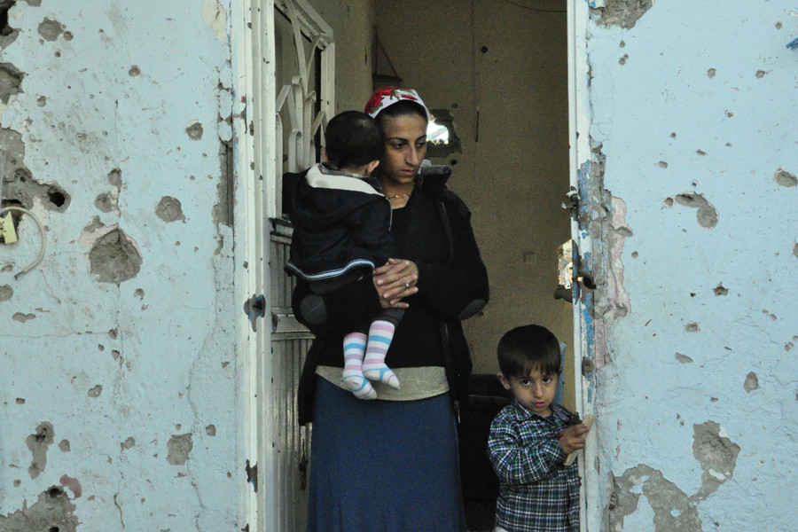 4 yıldır gazeteci olan kadın namlunun ucunu gösteriyor “Çatışmaların yoğun olduğu mahallelerde defalarca tarandık, bulunduğumuz evler hedef alındı. O nedenle sık sık kaldığımız evleri değiştirmek zorunda kaldık...”