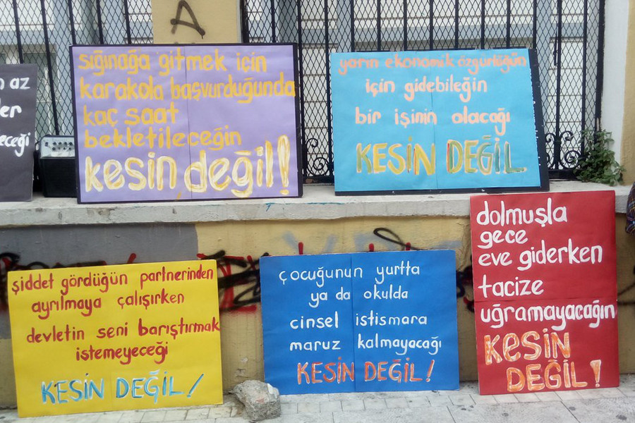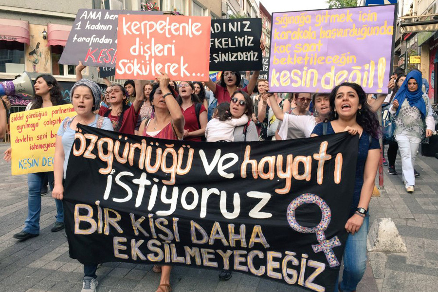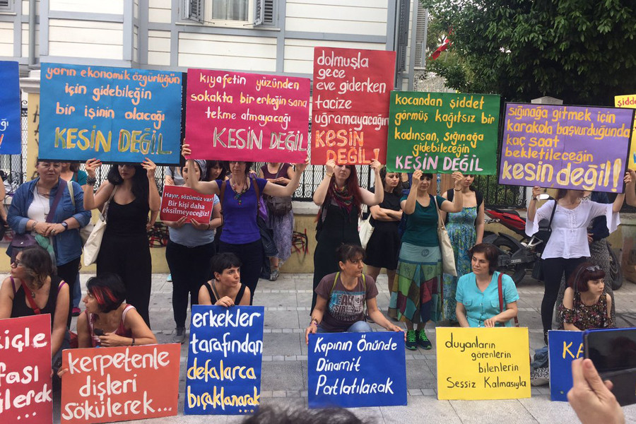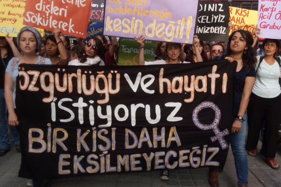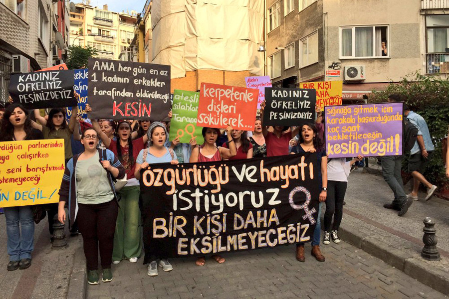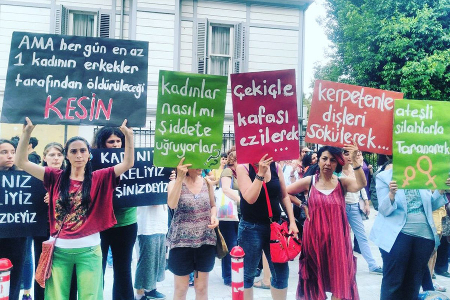 Cinayetlere Karşı Acil Önlem Grubu’nun çağrısıyla Kadıköy’de eylem yapan kadınlar, “Erkek şiddetine, erkek-egemen devlet politikalarına, her gün bir kadının öldürülmesini normalleştiren, hep bir şekilde bu şiddeti ‘hak ettiğimiz’ algısı yaratan iktidarın ‘makbul kadın’ anlayışına karşı kendimiz olabilmekte diretmek için, hayatımız bizim demek için bir araya gelelim” çağrısı yapıldı.