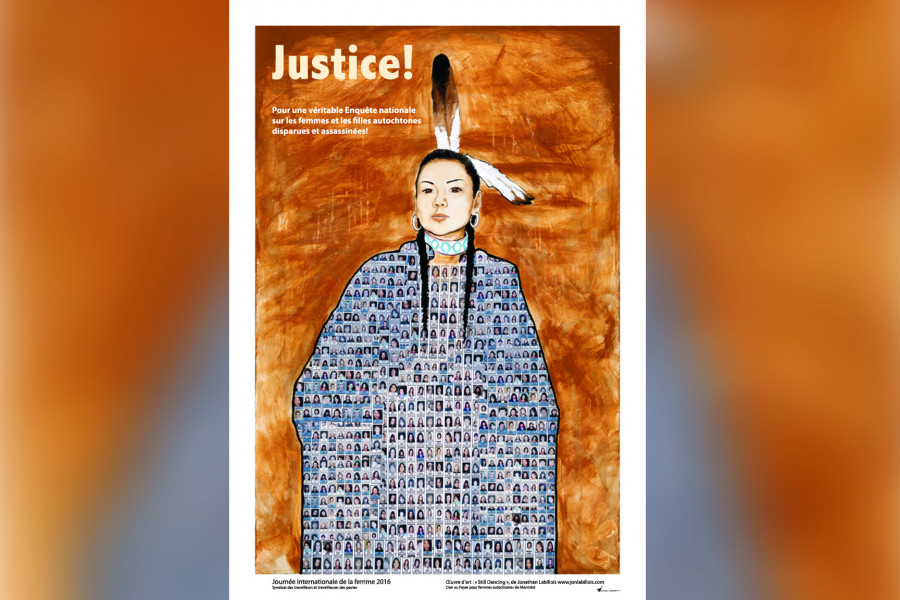 2016 8 Mart’ı için Kanada Posta İşçileri Sendikası, kayıp ya da katledilen yerli kadınların anısını yaşatmak ve onların yaşadıklarına dikkat çekmek için hazırladı bu posteri. Afişin hazırlanmasından hemen önce Kanada hükümeti yüzlerce kayıp ya da öldürülmüş Aborjin kadının akıbeti hakkında soruşturma dosyası hazırlandığını açıklamıştı. Aileler, yerli gruplar ve destekçiler bu soruşturmanın sonuçlarını uzun zamandır bekliyor ama yetkililer tarafından görmezden geliniyor. Kanada’nın uzun ve utanç dolu sömürge dönemi gaddarlığı en çok yerli kadınların bedenleri üzerinde sınanmıştı. Kadınları unutmamanın bir ifadesi olan bu afiş kendisi de bir Aborjin olan Jonathan Labillois’in eseri. Jonathan eserin orjinalini Montreal Yerli Kadınlar Sığınağına bağışladı. “Dansçılar dans edemeyenler, dans edemeyecek kadar hasta olanlar, yaşlılar ve artık bu hayatta olmayanlar için dans eder. Tıpkı bu kadının bedeninde dans eden bu kadınlar gibi. Çalınmış kız kardeşlerimizin anısına saygıyla” notuyla paylaşmıştı bu afişi...