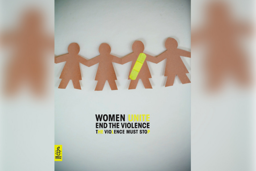 “Kadınlar Buluşun, Şiddeti Durdurun- Şiddet Sona Ermeli” Uluslararası Af Örgütü 2010 yılında S. Andrews’un bu afişiyle kadına yönelik şiddete karşı uluslararası mücadele gününde dayanışma çağrısı yapmıştı.