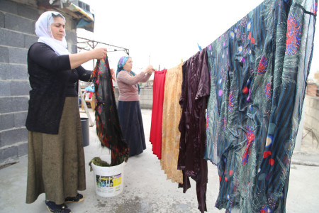 Gardıroplardaki rengarenk kiras ve fistanları Newroz için çıkaran Adana'daki kadınlar, yıkayıp, güzel kokular sürdükleri elbiseleri evin baş köşesine astı.