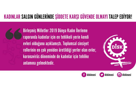 DİSK Kadın Komisyonu, KESK Kadın Meclisi, TMMOB Kadın Çalışma Grubu ve TTB Kadın Hekimlik ve Kadın Sağlığı Kolunun 1 Mayıs nedeniyle yaptığı açıklamada kadınların çalışma yaşamında yaşadıkları ayrımcılıklara dikkat çekildi. Kadınların salgın sürecinde neredeyse tamamının işsiz kaldığı, çalışanların ise daha düşük ücretlerle ve korunmasız, güvencesiz bir şekilde çalıştırılmaya devam edildiği belirtilen açıklamada DİSK-AR Nisan 2020 İşsizlik ve İstihdam Görünümü Raporu’na göre kentsel kadın işsizliğinin yüzde 32’ye dayandığına dikkat çekildi. Kovid-19 salgınıyla birlikte geçici, güvencesiz, kayıt dışı alan ve sektörlerde üretim daralması sonucu kadın işsizliğinin artmasının öngörüldüğü belirtilirken, ücretli ve ücretsiz emek alanında yaşanan cinsiyet temelli artan sorunlara yönelik politikaların yeniden oluşturulmasına ilişkin şu taleplere yer verildi;