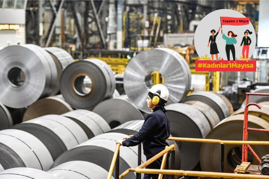 Bir başka metal işçisi kadın ise evde çalışmak ve işte çalışmanın arasında gelip gidiyor. Günde 8 saat çalışıyor, hatta sokağa çıkma yasaklarında bile. Çünkü çalıştığı yer kaymakamlıktan izin almış. Ev işleri ve çocukların evde yalnız kalması en büyük problemi. Şöyle anlatıyor korona günlerini: “Çalışırken çocuklar evde olduğundan vicdan azabı çekiyorum. Evde kalmak istesem bu sefer de işsiz kalır mıyım korkusu. Anlayacağınız durumlarımız hiç iç açıcı değil. Ramazan geldi. Her gün yemek yapma derdi, çorbası, yemeği, salatası tabi Ramazana özel oluyor. Önceden işten gelince yorgun olsam hemen aperatif bir şeyler yapardım. Şimdi kısa da sürmüyor yemek yapmak ya da önceki günden hazırlıyorsun. Ve çocuklara gün içinde evde yesinler diye kek, börek yapıyorsun. Anlayacağınız fabrikada işçi, evde pastacı, temizlikçi, aşçı, olduk. İyice bölündük kadınlar olarak. Bu günler nasıl geçecek, ne zaman bitecek bilmiyorum her şey muamma. Geleceğe dair bir tane ‘Kesin şöyle olur’ diyebilecek bir şey olmaması çok kötü bir şey. Herhalde 1 Mayıs talebim: ‘Güvenli gelecek’ olurdu”.