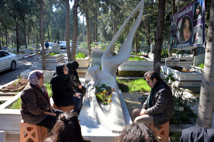 Öğlen saatlerinde kızlarının Mersin Şehir Mezarlığı’ndaki mezarına gelen başta anne, babası ve yakınları, mezara çiçek bıraktı.