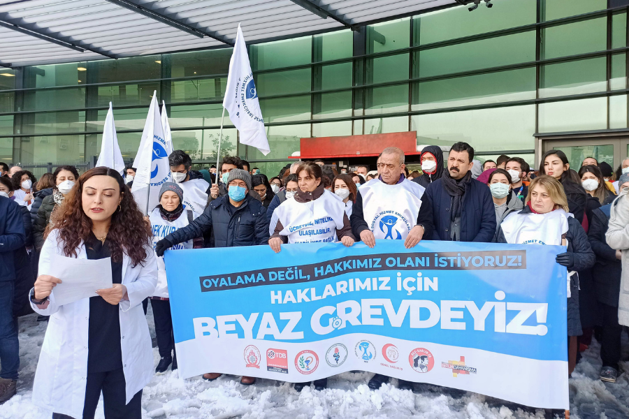 Türk Tabipler Birliği (TTB) başta olmak üzere sağlık alanındaki emek ve meslek örgütlerinin ekonomik ve özlük haklar, etkin bir sağlıkta şiddet yakası, çalışma koşullarının iyileştirilmesi, 5 dakika muayene dayatmasının sonlandırılması, tıp fakültelerindeki eğitimin niteliğinin artırılması gibi çok çeşitli taleplerle yaptığı iş bırakma eylemleri bugün sabah saatlerinde başladı.