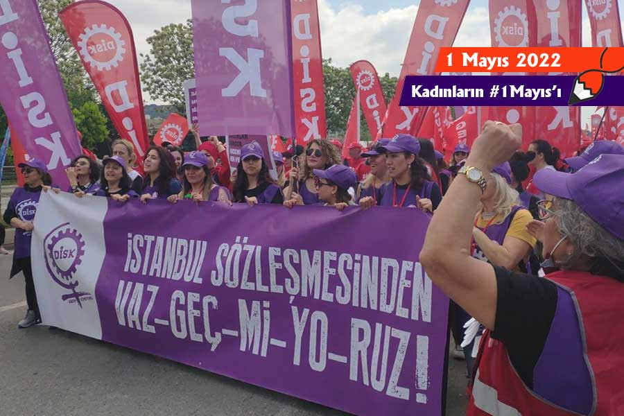 1 Mayıs alanında kadınların dikkat çekici bir katılımı var. İstanbul Sözleşmesinin feshi tartışmaları ile kitlesel sokak eylemleri yapan kadınalar bir kez de İstanbul 1 Mayıs alanından İstanbul Sözleşmesinden; haklarımızdan ve hayatlarımızdan vazgeçmiyoruz dedi.