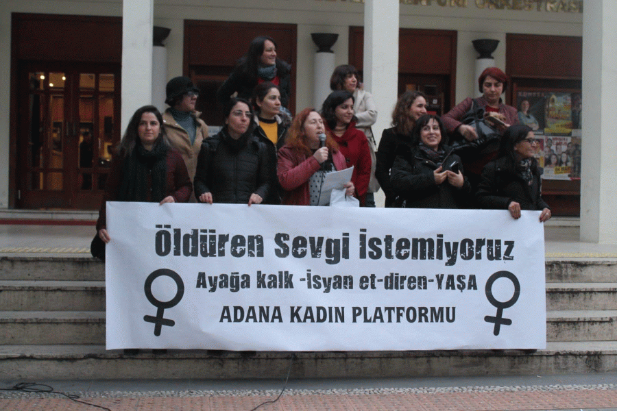 “One Billion Rising” Bir Milyar Ayağa Kalkıyor kampanyası adını yaklaşık bir milyar rakamına tekabül eden BM’nin “her 3 kadından biri hayatları boyunca şiddete ve tecavüze maruz kalıyor” şeklindeki raporuna dayanıyor. 2013’ten beri kadınlar Dünya’nın bir çok yerinde adalet için ayağa kalkıyor. Adana’da düzenlenen etkinlikte Adana Büyükşehir Belediyesi önünde bir araya gelerek “Öldüren sevgi istemiyoruz“ dedi.