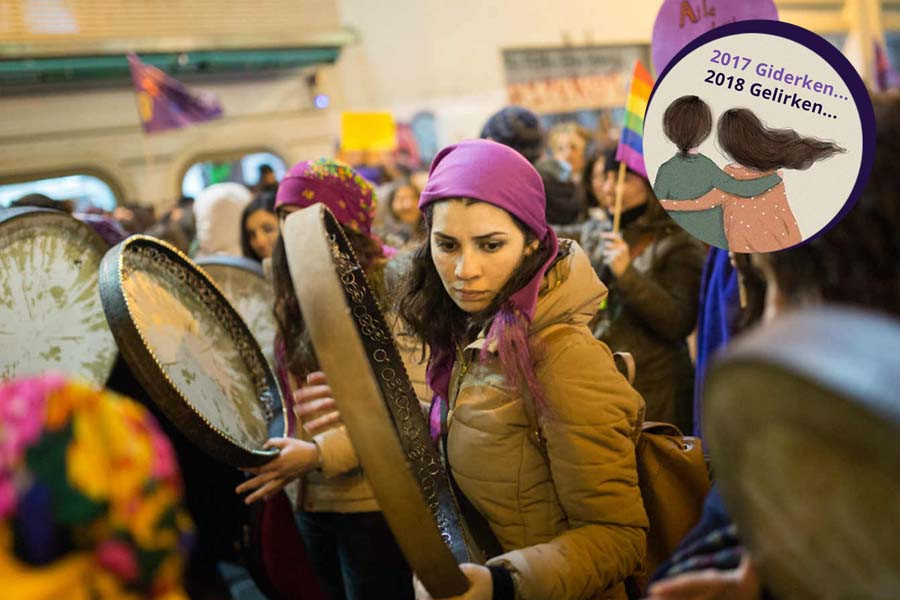 Öncelikle üzerine basmadan geçemeyeceğiz; her günü OHAL ile geçen bir 2017 yaşadık. Birçok yeni KHK ile uyandığımız sabahlar oldu. Ve ne yazık ki, her günü en az bir kadın cinayeti, çocuk istismarı, şiddet ve kadınlara yönelik saldırılarla geçirdik. Ama hem gasbedilen haklarımıza hem de erkek-devlet şiddetine karşı ses çıkaran, “öyle kolay değil” diyen kadınların mücadelesine de tanık olduk. OHAL’e rağmen tutamadılar duvarların ardında kadınları, kolay kazanmadığımız haklarımızı vermemek için uğraştık, öyle kolay olmadığını her sokağa çıkışımızda bir kez daha gösterdik. Dedik ya bakalım şöyle ardımıza diye, e malum geçmişte ne yaşadığımız, gelecekte az çok ne yaşayacağımızın da göstergesidir. O zaman şöyle bir ardımıza bakalım senenin başından bu yana kadınların gündeminde ne vardı hatırlayalım.